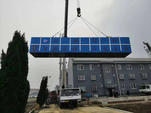 陜西榆林農(nóng)村社區(qū)生活污水處理設(shè)備吊裝現(xiàn)場